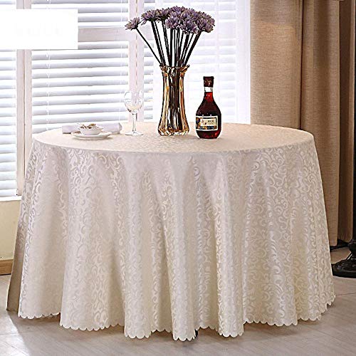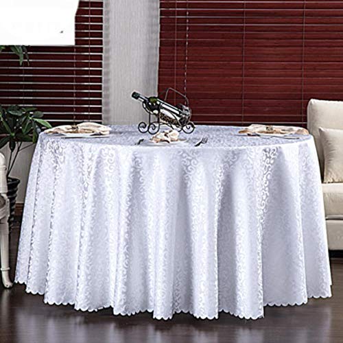 BTKNOO Multi Size Wedding Party Jacquard Polyester Fabric Solid Round Table Cloth Hotel Rectangular Tablecloth Home Dining Table Cover,White,Round 240cm