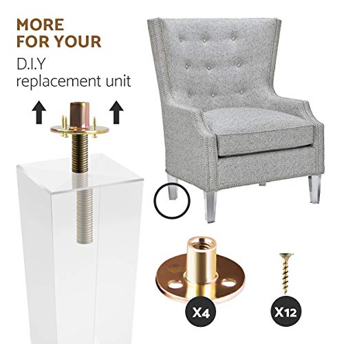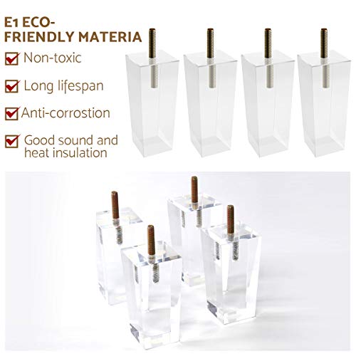 Btowin, 4 piedini per mobili in acrilico da 10,2 cm, 4 piedini in vetro trasparente con filettatura M8 da 5/16'' e piastra di montaggio e viti per armadietti, tavoli, tavoli, letti