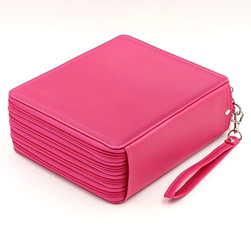 Btsky - Astuccio in pelle sintetica super capiente a più strati, 168 spazi per organizzare i colori e la cancelleria (matite non incluse), Rosa