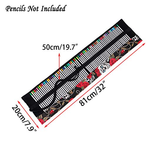 BTSKY - Portamatite arrotolabile in tela con 72 scomparti, motivo: teschio, matite non incluse