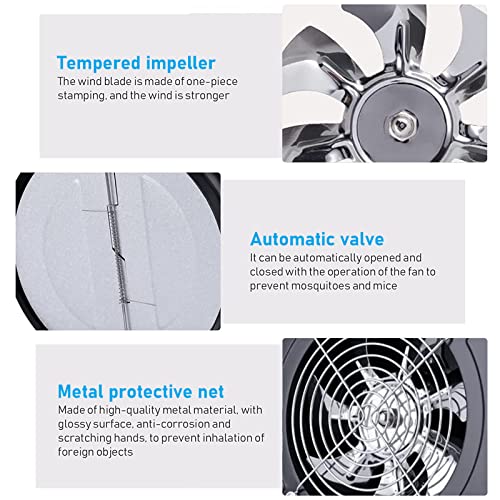 Alta qualità: il ventilatore di scarico da 150 mm è realizzato in materiale metallico di alta qualità, resistente all'umidità e alla ruggine. Ha una forte pressione del vento e un'elevata efficienza una lunga durata.