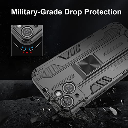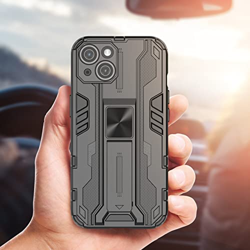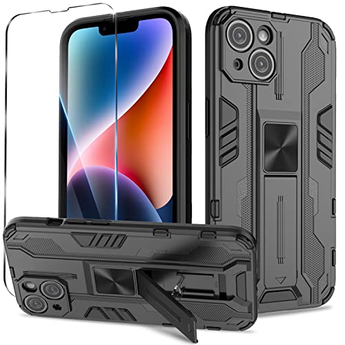 Btstring Cover per iPhone 14 con Pellicola Protettiva, Militare Custodia con Stand Supporto Bumper Antiurto Case, TPU+PC Dual Layer Custodia- Nero