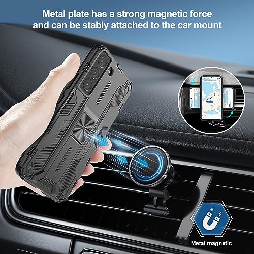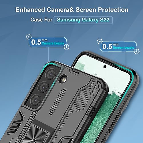 Btstring Cover per Samsung Galaxy S22 5G con Pellicola Protettiva, Militare Custodia con Stand Supporto Bumper Antiurto Case, TPU+PC Dual Layer Custodia- Nero