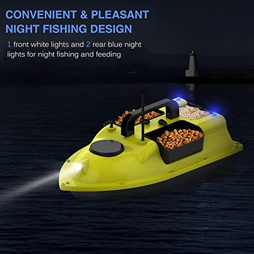 【Dettagli eccellenti】: la barchino carpfishing ha doppi motori e doppie eliche. Può viaggiare facilmente entro 500 m dal ricevitore del segnale del telecomando. Inoltre, la barca esca è dotata anche di luci per la visione notturna, in modo da poter vedere chiaramente la barca da lontano anche di notte.