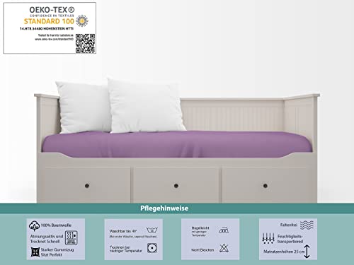 Buanart Lenzuolo con angoli elasticizzati per bambini, 70 x 140 x 25 cm, in 100% cotone, altezza del materasso fino a 25 cm, per culla e culla, standard Oeko-TEX (viola, 70 x 140 x 25 cm)