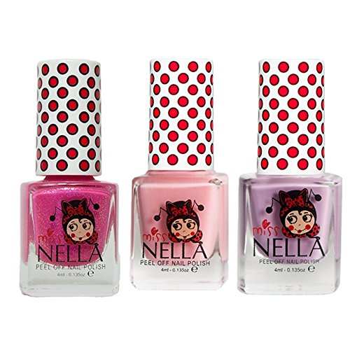Miss Nella Bubble Gum, Cheeky Bunny Glitter, Tickle Me Pink molto brillante, smalto per bimbe a base acqua, Formula peel off