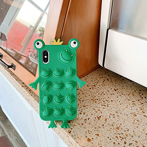 Pop Bubble Fidget Toys Custodia per iPhone X/XS, Push Bubble Fidget Sensory Toy Verde Silicone TPU Custodia Protettiva Dolce 3D Rana Morbido Silicone Antiurto Custodia per Ragazze Donne