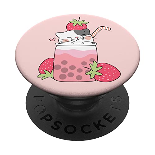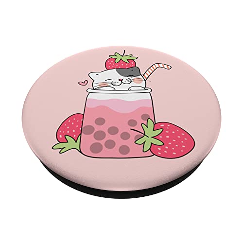 Bubble Milk Tea, Boba Cute Cat, Kawaii Strawberry Cat Boba PopSockets PopGrip Intercambiabile