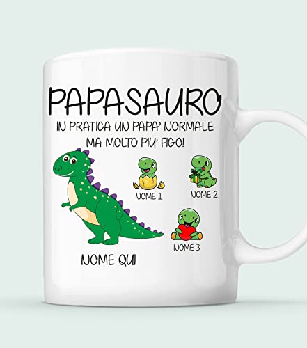 Bubbleshirt Tazza Papà PERSONALIZZABILE Mug Festa del Papà Papasauro In pratica un papà normale ma molto più figo Regalo Papà