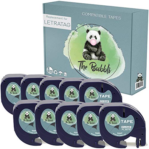 The Bubbli Originale | 12267 S0721530 S0721550 Nero su Trasparente Etichette Plastica Compatibile per DYMO LetraTag LT-100H LT-100T LT-110T QX50 XR XM 2000 Plus (12mm x 4m | 10 Nastri)