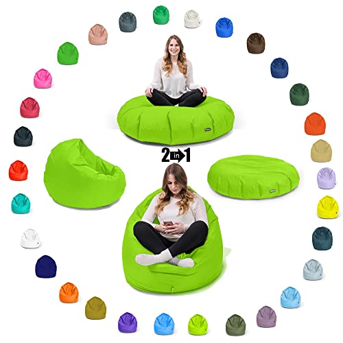BubiBag Pouf per bambini e ragazzi - Cuscino da pavimento per interni ed esterni, cuscino da gioco, incluso con imbottitura (100 cm di diametro, verde kiwe)