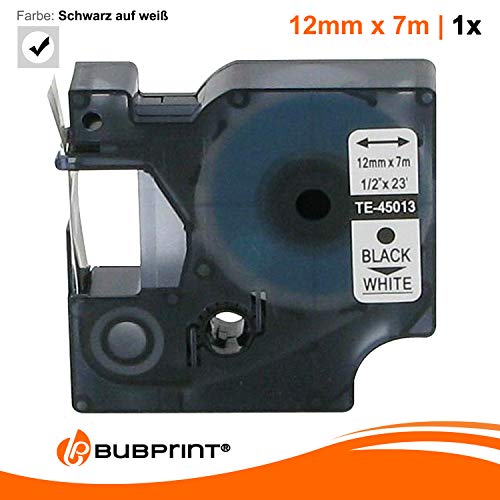 Bubprint Nastro compatibile per Dymo 45013 S0720530 per Labelmanager 100 120 150 160 200 Labelpoint 100 150 200 250 300 Nero su Bianco 12mm x 7m
