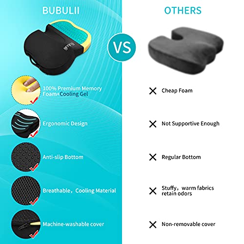 Bubulii Cuscino Antidecubito, Coccige Sciatica Cuscino in Gel, Memory Foam Ergonomico Cuscino Emorroidi per Sedile Auto, Ufficio (Nero 44x39x7.5CM)