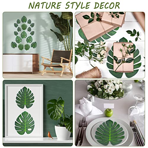 Confezione Contenuto - Set di 48 foglie decorative disossate, due foglie grandi, due foglie medie, tutte con foglie a dorso di monstera, e 12 foglie ciascuna. I diversi tipi di fogliame accentuano l'atmosfera della foresta pluviale.