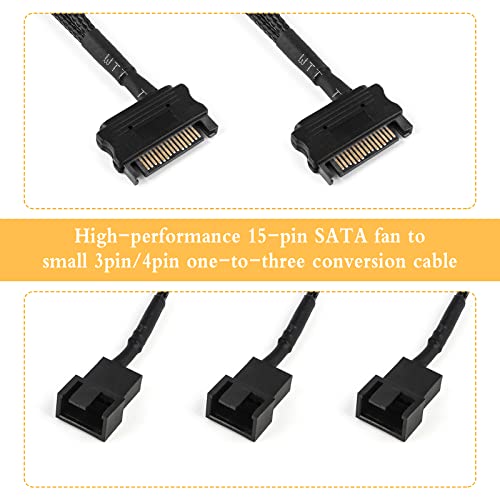 Bubuyun 2PCS Splitter Ventole 4 pin, Cavo Adattatore Ventola di Raffreddamento Cavo Adattatore di Alimentazione SATA da 15 pin a 3 * 4pin con 3 Convertitori Cavo Prolunga Ventola, 30cm