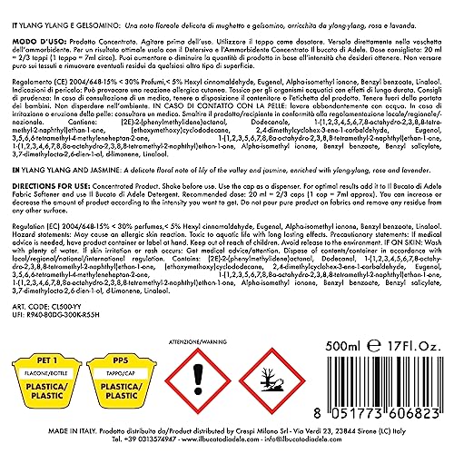 IL BUCATO DI ADELE il bucato che profuma di casa | Profumatore Bucato Lavatrice, Fragranza Ylang Ylang e Gelsomino, Formato 500 ml