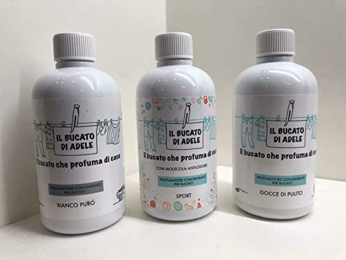 Il Bucato di Adele" Profumatore Concentrato per Bucato, TRIS Profumazioni BIANCO PURO -GOCCE DI PULITO- SPORT 3 Flaconi da 500 Ml