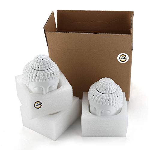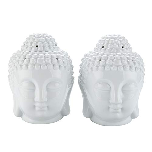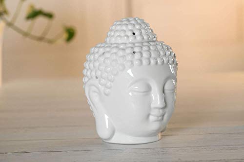 T4U Budda Bruciatore Olio Ceramica Diffusore di Oli Essenziali con Cucchiaio di Candela - Set di 2, Testa di Buddha Bianca Bruciatore Candele Porcellana per Soggiorno Decorativo Ufficio Yoga Spa