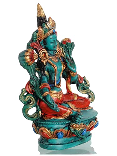 BUDDHAFIGUREN Statua del Buddha Tara Verde 12 cm - Resina - Turchese