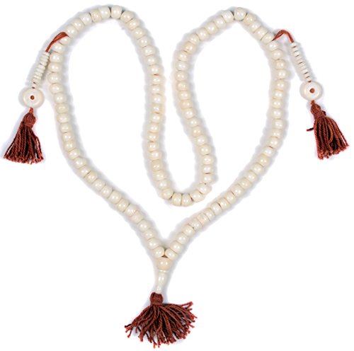 BUDDHAFIGUREN/Billy Held Yak-Horn Mala-Catena per Preghiera, Corno, Beige, 8mm Perlen
