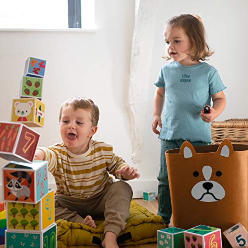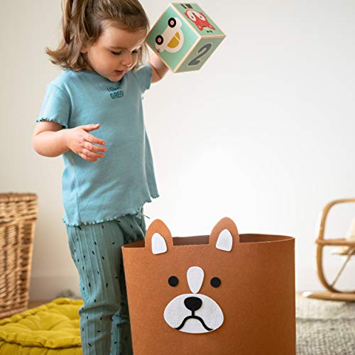TANTI USI: Con una capacità di 30 litri (35 cm x 35 cm), questa cesta portabiancheria salvaspazio ha così tanti usi che i genitori ed i bambini la adoreranno. Elegante cesto giochi bambini per un angolo della stanza del tuo bambino o per riporre i vestiti puliti. Dimensione perfetta per un adorabile cesto portagiochi bambini grande o per tenere libri su una scrivania. Un divertente Cane 3D che si adatta a qualsiasi arredamento della camera, ideale per neonati e bambini piccoli.