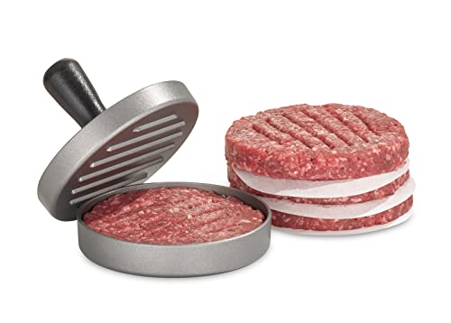 Buddy's BBQ - Pressa per hamburger in alluminio, manico in polipropilene, con 100 fogli di carta, diametro esterno 12 cm