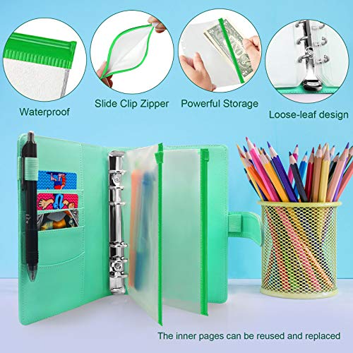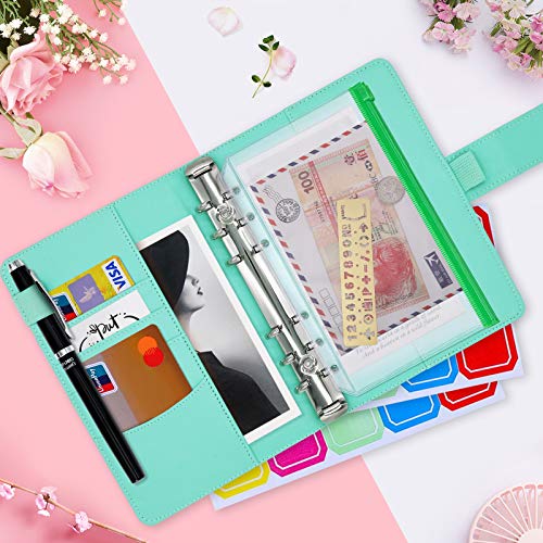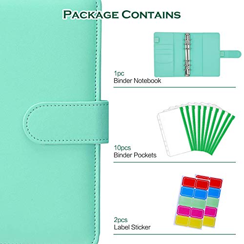 A5 Budget Binder, Badve 6 Anelli PU Cash Stuffing Quaderni ad Anelli con 10 Binder Tasche/ 2 Etichette Autoadesive per Money Binder, Budget Planner - Verde