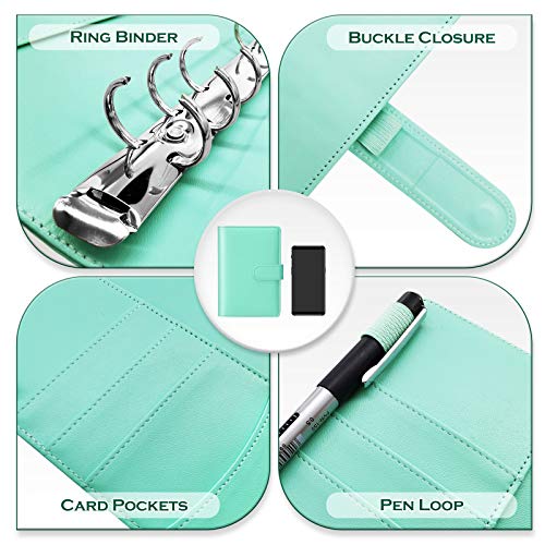 【Progettato Appositamente】Cartella per notebook A5 in pelle PU piacevole con posizione della penna e più posizione della scheda. Facilità d'uso, premendo entrambe le estremità per attivare e aprire l'anello a foglia libera (spingere delicatamente l'anello per chiuderlo, non ferirsi le mani)