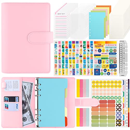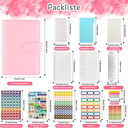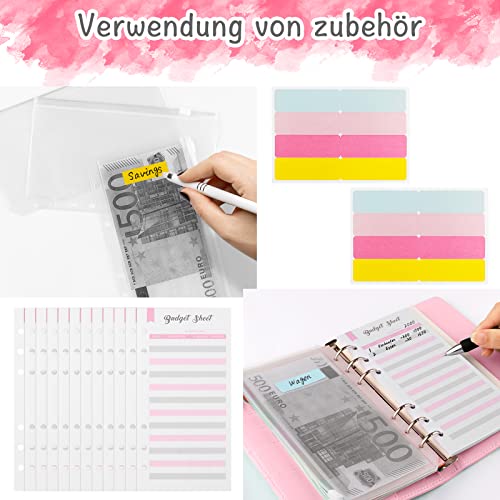 Budget Planner - Set di raccoglitori ad anelli, formato A6, formato A6, per risparmiare denaro, per risparmiare denaro, contanti, con metodo di riscossa, 12 fogli di budget, etichette