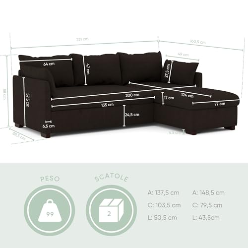 ✅ Dimensioni del divano: 220 cm di larghezza x 86 cm di profondità e 160 cm di profondità della chaise longue x 90 cm di altezza. Dimensioni del letto: 220 cm di larghezza x 160 cm di profondità.