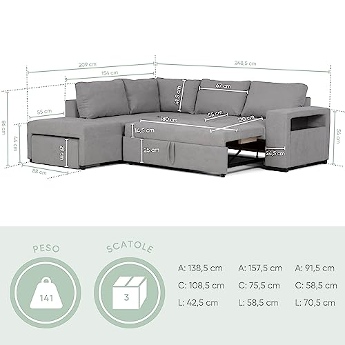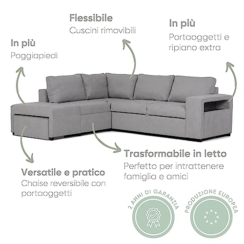 ✅ Un divano reversibile a 3 posti con 2 pouf e un arco perfetto come divano e letto. Dal momento che ha 2 pouf, può anche trasformarsi in divano cheslong a 4 o 5 posti. Questo divano letto a 3 posti si trasforma facilmente in un comodo letto matrimoniale per ricevere familiari e amici.