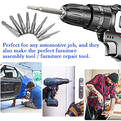【Accessori pratici per utensili】:Dimensioni multiple, gambo esagonale da 1/4 di pollice., può essere utilizzato con cacciavite elettrico, cacciavite manuale, trapano elettrico, strumenti di gruppo generali, ecc.Ideale per lavorare su veicoli, biciclette e mobili. Questo pratico set di cacciaviti Torx, collocato negli spazi più ristretti, è un pratico aiuto in molte situazioni.