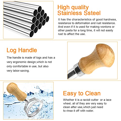 【Kit ideale per la cucina】Il taglia pasta è adatto a tutti i tipi di deliziosi gnocchi, torte di carne, biscotti o ripieni di formaggio. Il rullo può essere utilizzato per tagliare biscotti/spaghetti/tagliatelle. È spesso adatto per la cucina fai-da-te, la famiglia, le feste e i picnic. È un kit ideale per la tua cucina.