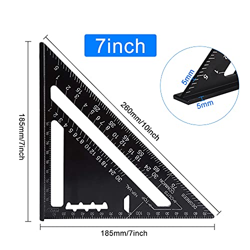 BUENTYA Squadra di Alluminio 7 Pollici Righello Triangolo Righello Triangolare da Carpentiere Triangle Goniometro Alta Precisione Misurazione Strumento di Misurazione Triangolo (Nero)