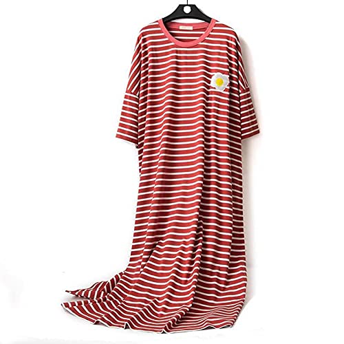 BuFanRenm Pigiama,Camicia da Notte a Righe in Cotone M-6XL Camicia da Notte da Donna Manica Corta da casa Camicia da Notte Casual Abito da casa Lungo Sleepwear Big Size XXL Beige