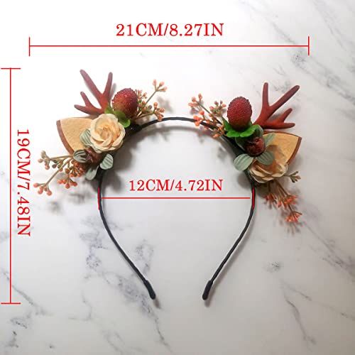 Bufenia, Cerchietti per capelli natalizi con corna da renna, fiori e bacche, accessori per capelli per feste e costumi, per donne e ragazze (C)