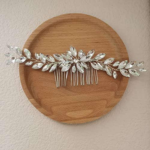 Bufenia Cristallo Sposa Sposa Argento Pettine Per Capelli Strass Accessori Per Capelli Da Sposa Damigelle D'onore Testa Pezzo Per Il Matrimonio