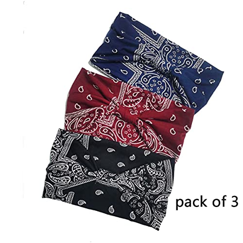 Bufenia Fasce larghe per capelli da donna con nodo a turbante, fascia elastica per capelli yoga, fascia per capelli a fiore, confezione da 3 (floreale B)