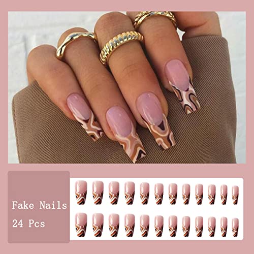 Bufenia Bara unghie finte leopardate ballerina cuore falso chiodo acrilico stampa su unghie lunghe 24 pezzi per donne e ragazze (B)