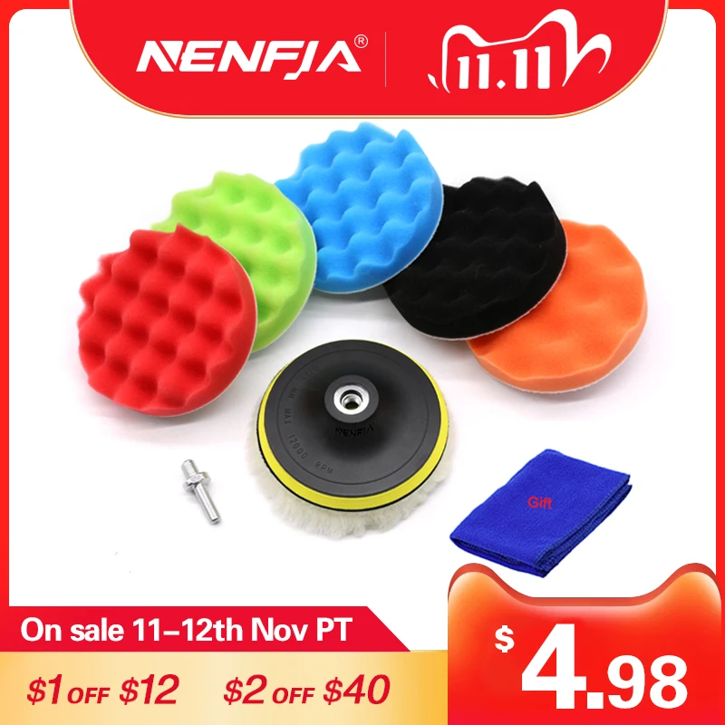 8Pcs Buffing Pad Set Thread 3/4/5/6/ inch Car Polishing pad Kit for Auto Car Polisher + Drill Adaptor M10 M16 Power Tools