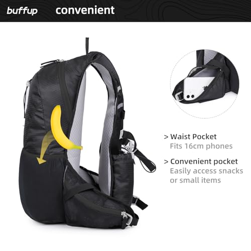 Buffup Zaino da trekking leggero, versatile e multiuso da 15 litri, impermeabile per bici MTB e montagna (Nero1)