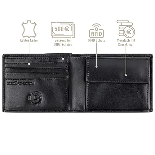 Bugatti Romano Portafoglio Uomo Pelle con Blocco RFID e Portamonete Slim, nero, Taille unique, Classico