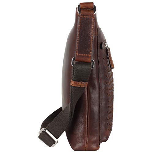Bugatti Woven Tracolla Uomo, Borsello Vera Pelle, Borse per Uomo e Donna, Piccola - Marrone