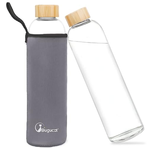 Bugucat Borraccia in Vetro 1000 ML,Bottiglia d'Acqua Trasparente Portatile Borraccia in Vetro Borosilicato con Guaina Protettiva,Borracce per Bicicletta Borracce da Escursionismo per Viaggi Campeggio