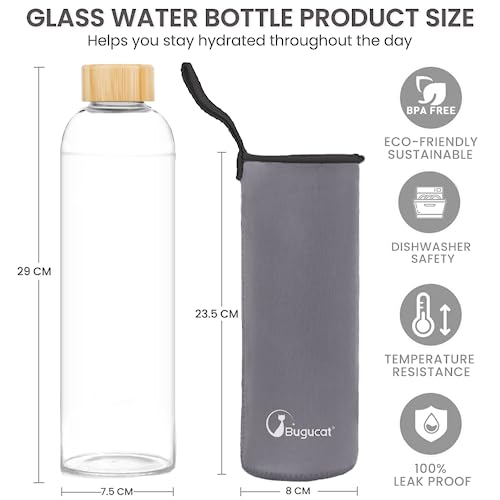 【MATERIALI PER LA SALUTE E LA SICUREZZA】 Realizzata in vetro borosilicato di alta qualità, la Bugucat Borraccia in Vetro è priva di piombo, non tossica e priva di BPA e non rilascia odori o sostanze chimiche nella tua bevanda come le alternative in plastica o acciaio inossidabile. La Borraccia in Vetro ha una bassa dilatazione e un'ottima resistenza agli urti, e può sopportare temperature comprese tra -20°C e 150°C. riutilizzabile.