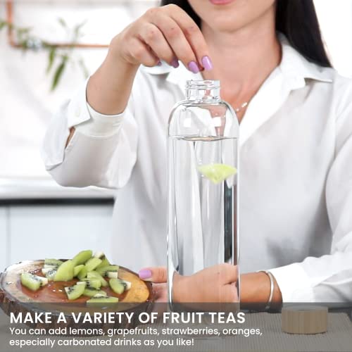 【A PROVA DI PERDITE E TENUTA ALL'ARIA】 Bocca della bottiglia con tappo in bambù con O-ring in acciaio inossidabile per uso alimentare e interfaccia a struttura a spirale, indipendentemente da come si posiziona Borraccia con Copertura, non colerà e rimarrà ermetico, l'ossigeno non può abbattere gli enzimi e distruggere il succo. Ideale per l'uso come contenitori per succhi, lattine sigillate multiuso e lattine per bevande.