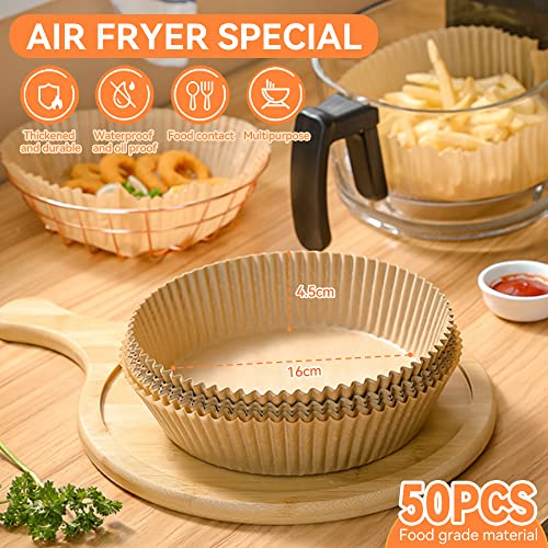 Bugucat Carta Forno per Friggitrice ad Aria 50PCS, 16CM Rotonda Antiaderente Usa e Getta Carta Pergamena, Antiaderente Carta per Friggitrice ad Aria per Padella Cottura al Forno Arrostire Microonde