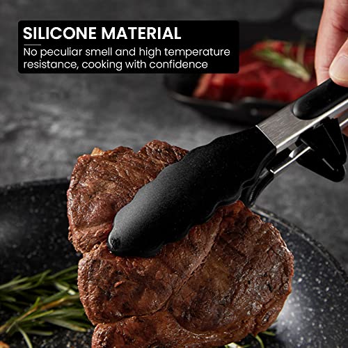 Bugucat Pinze da Cucina 2PCS,Pinze da Barbecue Professionale Pinze da Buffet in Acciaio Inossidabile e Silicone Alimentare Pinze Grigliare Resistente al Calore Antiscivolo con Fibbia di Bloccaggio