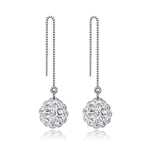 BUKEQILA Orecchini eleganti Donna Lunghi,Orecchini per Ragazze,Argento Sterling 925,Sfera di cristallo Shambhala,8mm Sfera di cristallo austriaca,miglior regalo regalo di compleanno regalo di Natale