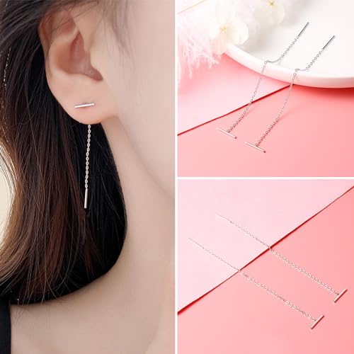 BUKEQILA Orecchini pendenti Donna Semplice,Orecchini per Ragazze,Argento Sterling 925,Linea di Orecchio,Argento,miglior regalo regalo di compleanno regalo di Natale